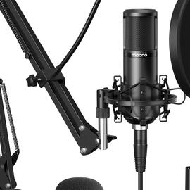 I use audacity and a fifine audio interface a maono condenser mic with a xlr cable. As well as Audacity